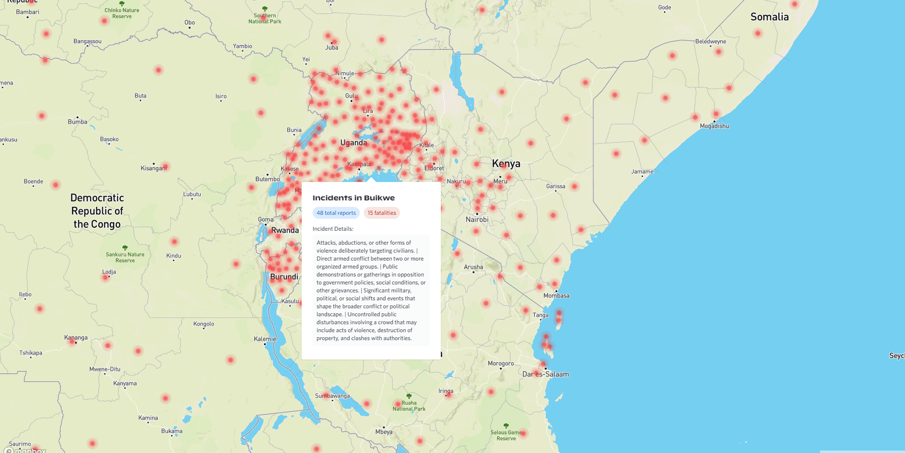 Interactive maps are openly available for monitoring, research, and community insights. These tools allow users to navigate incident patterns geographically, featuring: